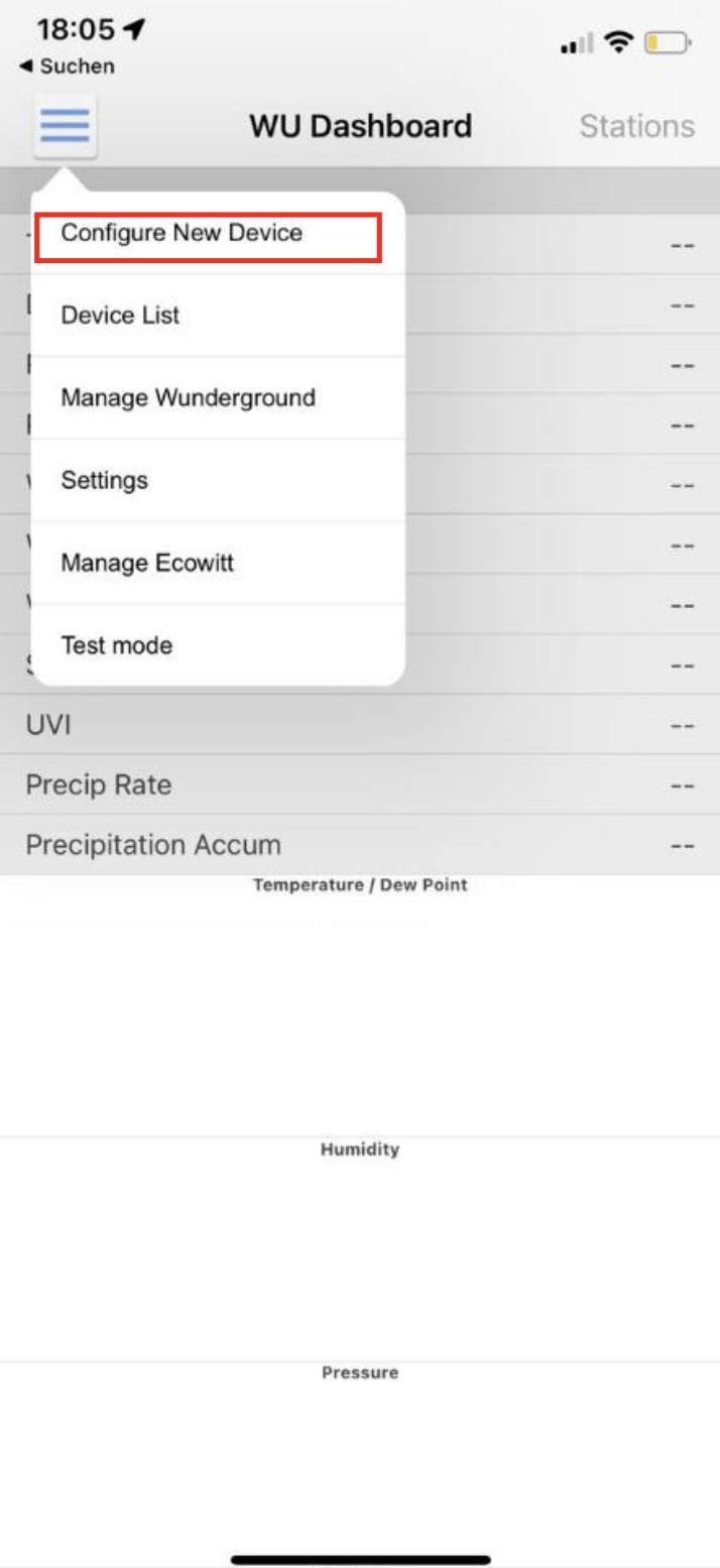 Über die WS-View App Configure New Device auswählen.