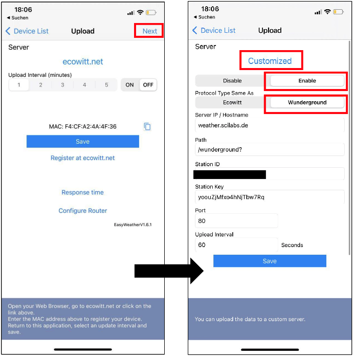 Sobald Sie folgendes Menu sehen, muss das Menu-Element Next betätigt werden. Sobald der Reiter Customized zu sehen ist muss dieser durch das Setzen von den Optionen Enable und Wunderground aktiviert werden.